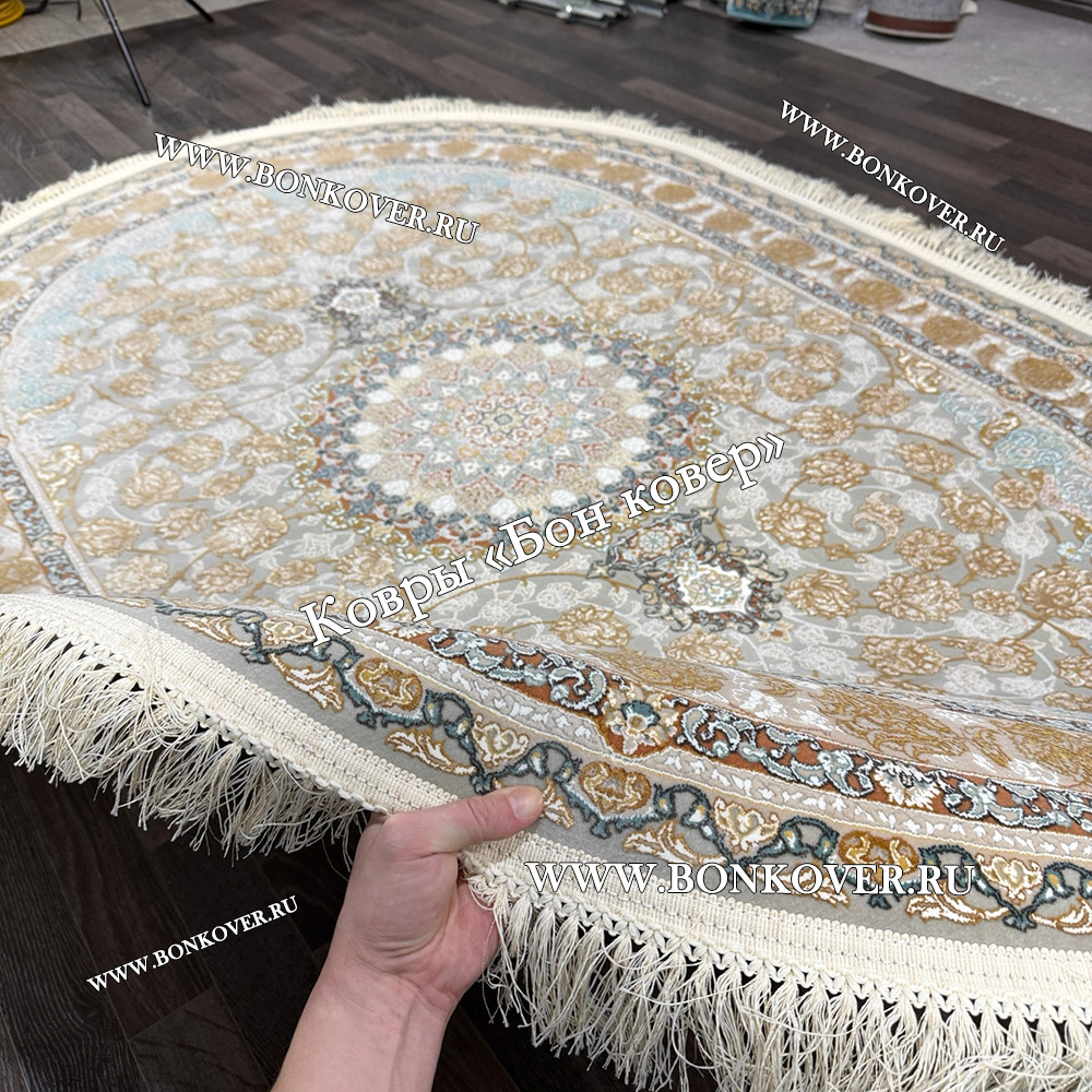 Элегантный Иранский Овальный Ковер Для Гостиной Арт 30246 наполняет интерьер квартиры теплом и уютом, гармонично сочетает в себе изящество и красоту. Он соткан из износостойких материалов, комфортный и долговечный.