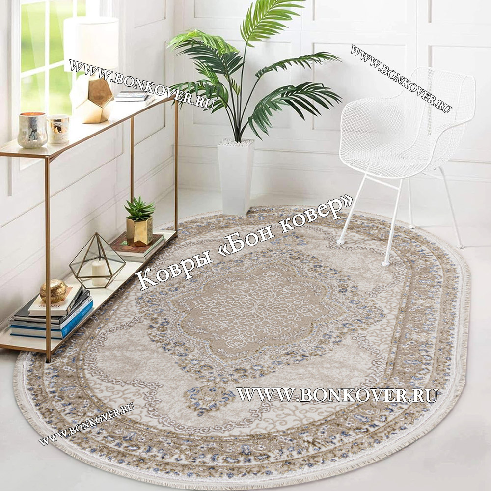 Ковер Для Гостиной Арт 29883 Турция Овал станет блестящим дополнением интерьера, оформленного в современном или классическом стиле. Мягкое, но прочное, ковровое изделие обеспечивает тепло- и шумоизоляцию, отличается длительным сроком эксплуатации, надежностью, экологичностью и высокой износостойкостью, является отличной защитой от повышенной влажности в помещении и утеплителем для холодного пола. Благодаря качеству материалов, ковер не деформируется, сохраняет форму под тяжестью предметов мебели. За его поверхностью легко ухаживать.