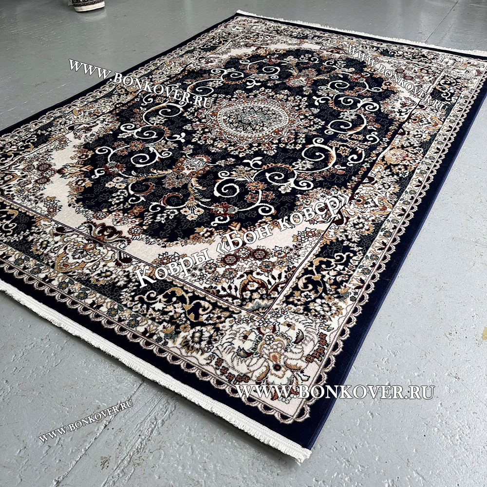 Долго искали смотрели на разных сайтах , в итоге ваш ковер приглянулся больше всего . Доставили в рулоне на следующий день , оплатили при получении . Идеальный вариант , цвет темно синий с переливом - рисунок очень выйгрышно смотрится !