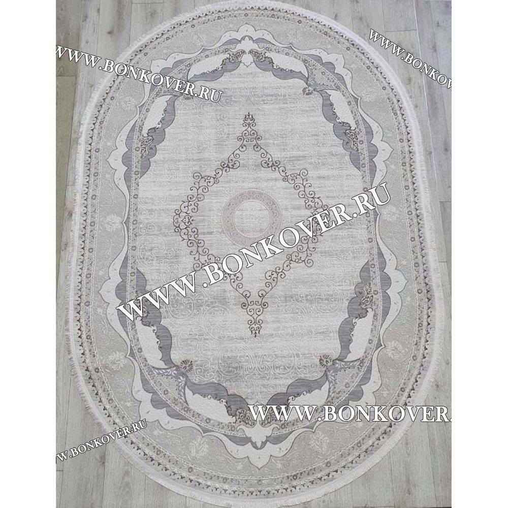 Изящный Ковер Турция Для Гостиной Дизайн 91 Серый с Бежевым Овал наполняет интерьер гостиной теплом и уютом, гармонично сочетает в себе изящество и стиль. Он выполнен из высококачественного сырья, комфортный и долговечный.