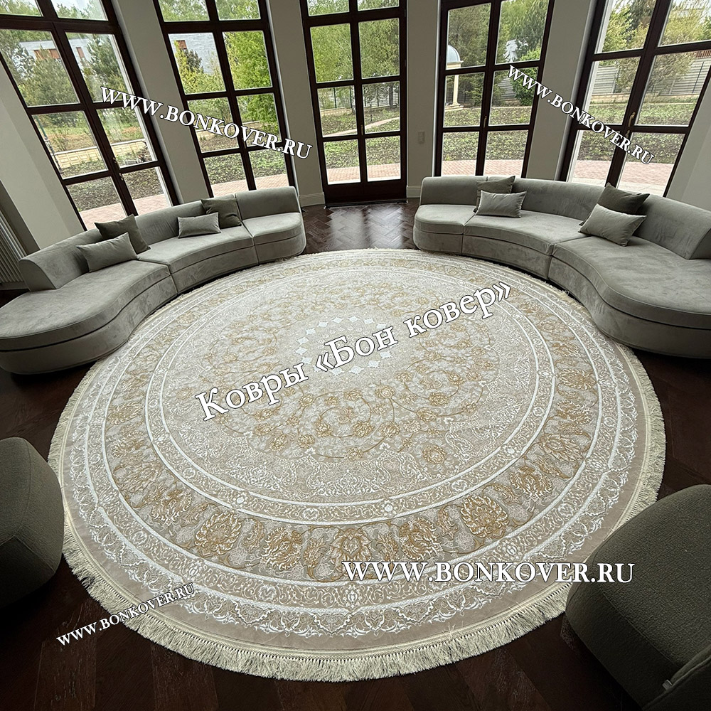 Импозантный Круглый Ковер Для Гостиной Арт 30256 наполняет интерьер комнаты теплом и уютом, гармонично сочетает в себе изящество и красоту. Он изготовлен из высококачественного сырья, комфортный и долговечный.