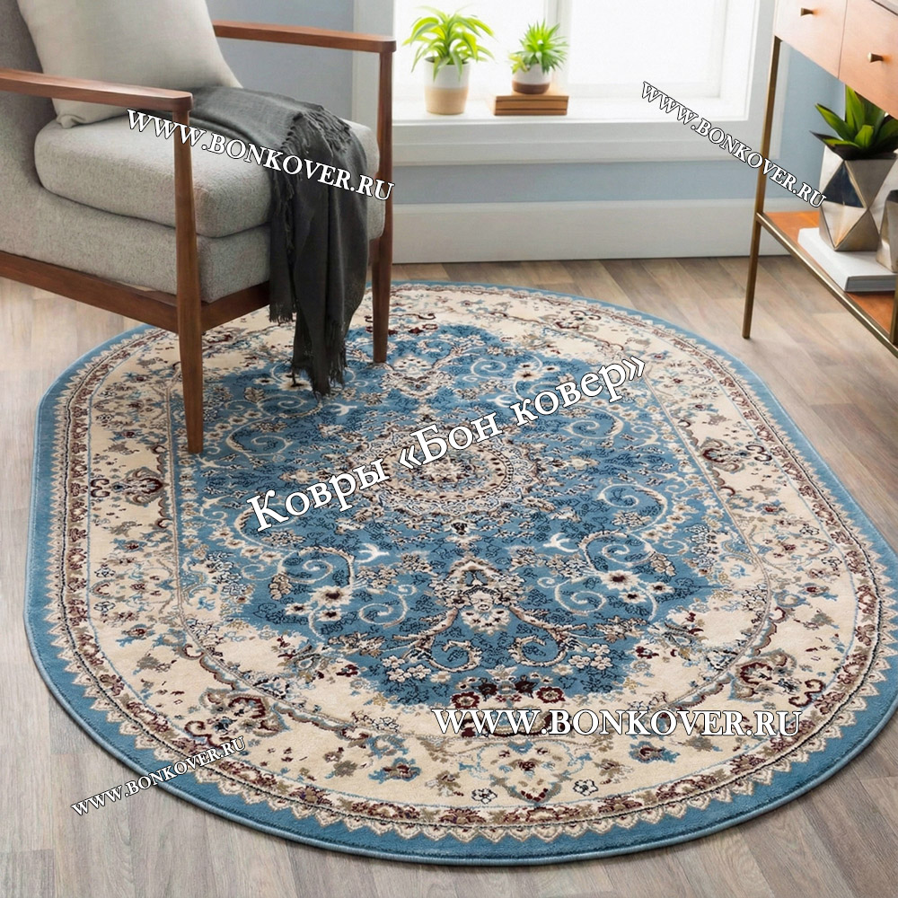 Турецкий Ковер Для гостиной дизайн 77 Овал станет блестящим дополнением интерьера, оформленного в современном или классическом стиле. Мягкое, но прочное, ковровое покрытие обеспечивает тепло- и шумоизоляцию, отличается длительным периодом эксплуатации, надежностью, экологичностью и высокой износостойкостью, является отличным противодействием от повышенной влажности в помещении и утеплителем для холодного пола. Благодаря качеству материалов, ковер не деформируется, сохраняет первоначальный вид под тяжестью предметов мебели. За его поверхностью легко ухаживать.