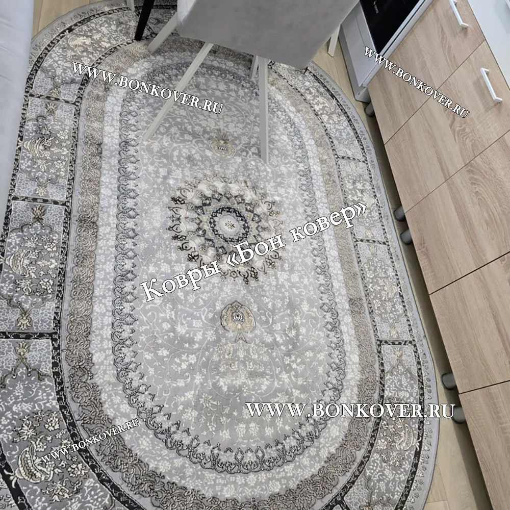 Турецкий Ковер Для гостиной New дизайн 96 Серый Овал станет шикарным преображением жилого помещения, подчеркивая высокий статус хозяина.